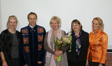 Frå venstre: Dr. Judith Mc Lean, Queensland University of Technology, Australia, prodekan Bjørn Kåre Myskja, doktoranden Marit Ulvund, Førsteamanuensis Heli Aaltonen, Institutt for kunst- og medievitenskap, NTNU og Professor Rikke Gürgens Gjærum, Høgskolen i Harstad