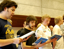 Høgskulekoret syng på "Messias" medan avdelingsrådet er på besøk.