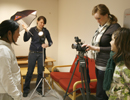 Karen Marie instruerar Seline og Jorun i korleis dei skal opptre framfor kamera.