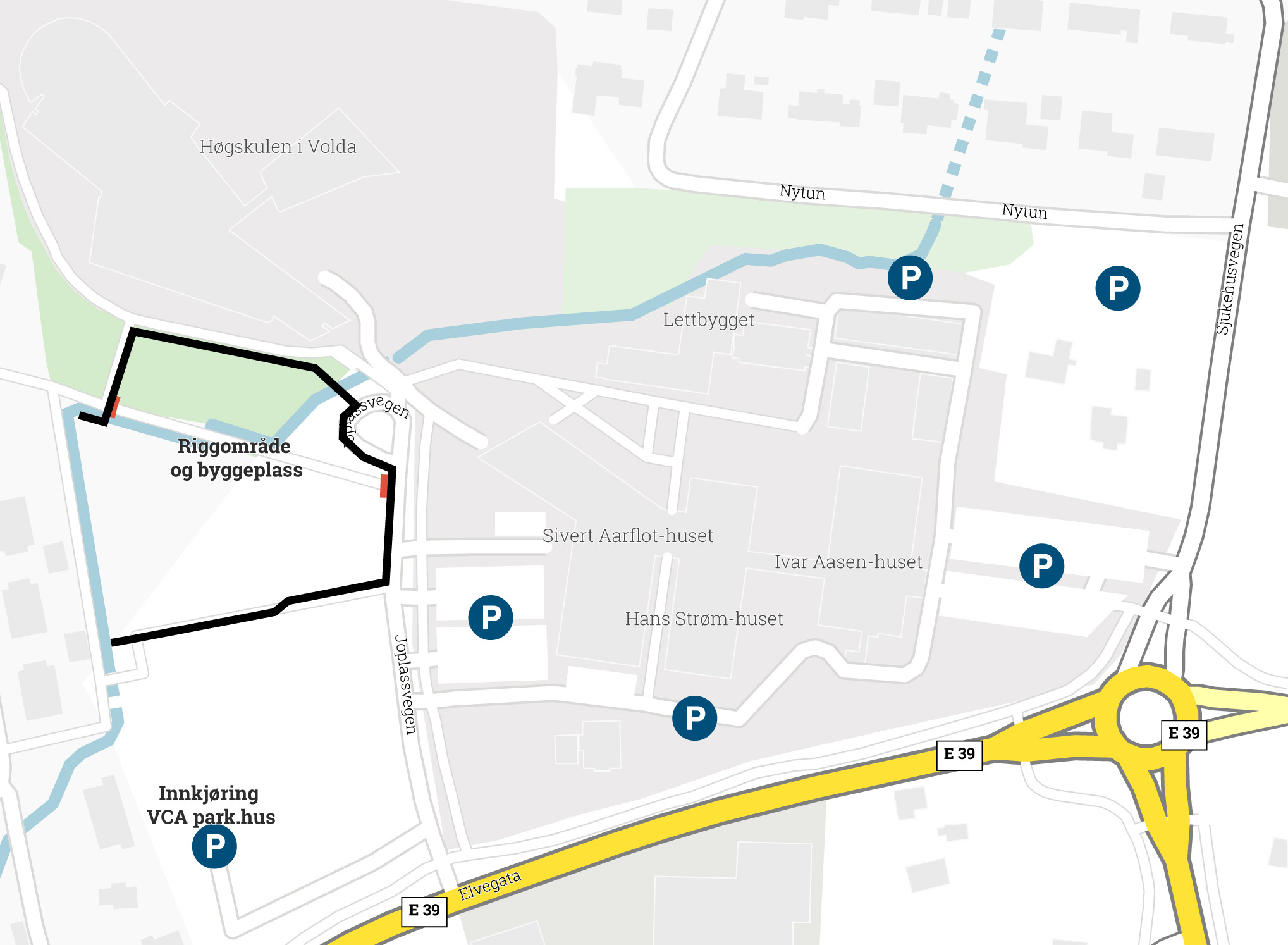 - Parkeringsarealet mellom Berte Kanutte-huset og Volda Campus Arena vert avsperra. Alternativ parkeringsplass vert på Rotevasstomta ved Ivar Aasen-huset, same areal vi nytta då Sivert Aarflot-huset vart bygd. Sjå kartutsnitt. Vi minner også studentar og tilsette om at vi har gode parkeringstilhøve i underetasja på Volda Campus Arena.
