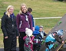 HVO-studentar ved Grønmyr Holstad barnehage saman med ei av småbarnsgruppene. Anneli Hasfjord Frantsen (til høgre) har her rolla som pedagogisk leiar.