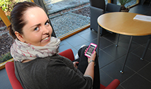 Gina Næss Korslund er klar med mobiltelefonen for å følgje med på Instagram.